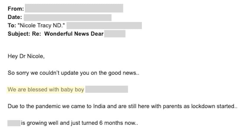 During the time we worked with them, Vanessa landed a job she loved and decided to do the transfer of the genetically normal embryo. To their absolute delight, after several prior implantation failures, the embryo implanted, and Vanessa went on to have a healthy pregnancy.